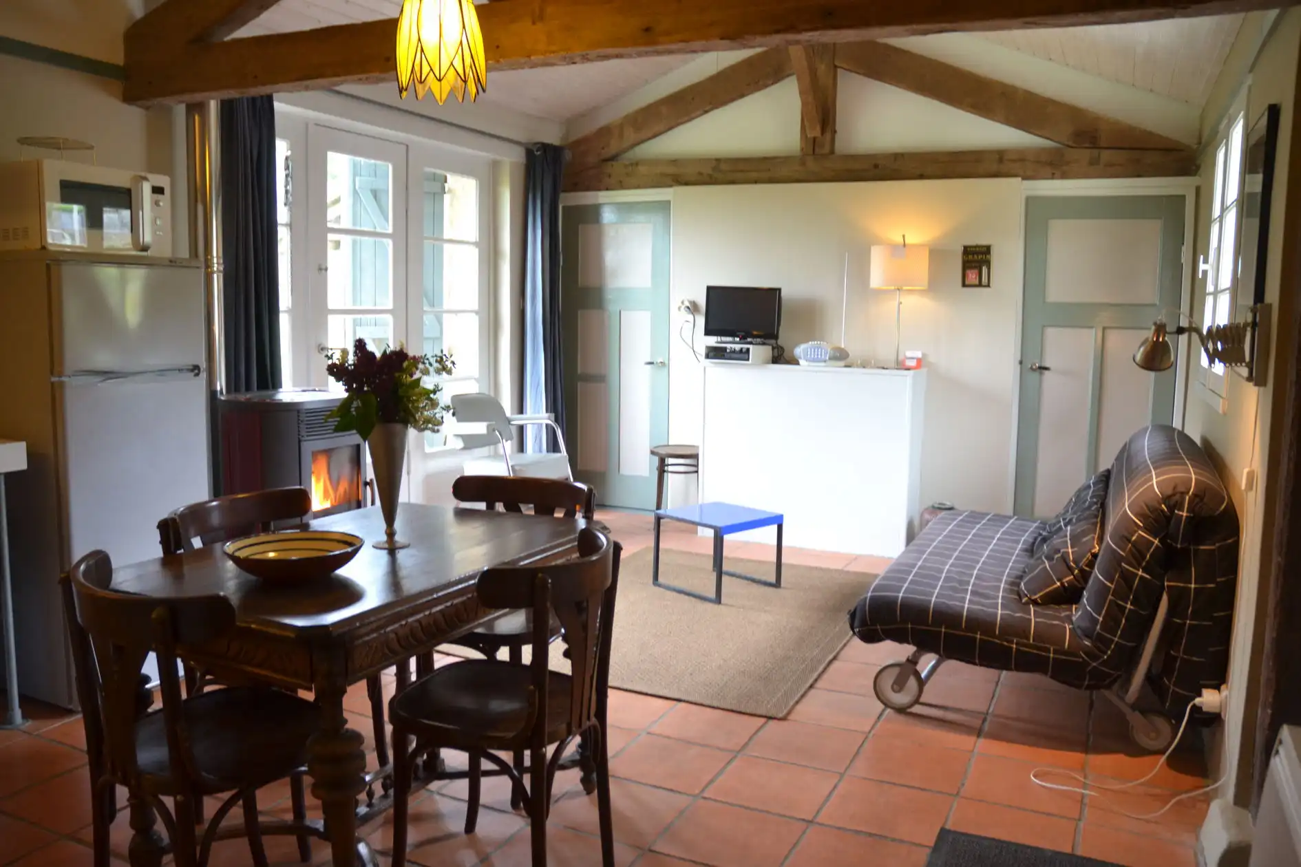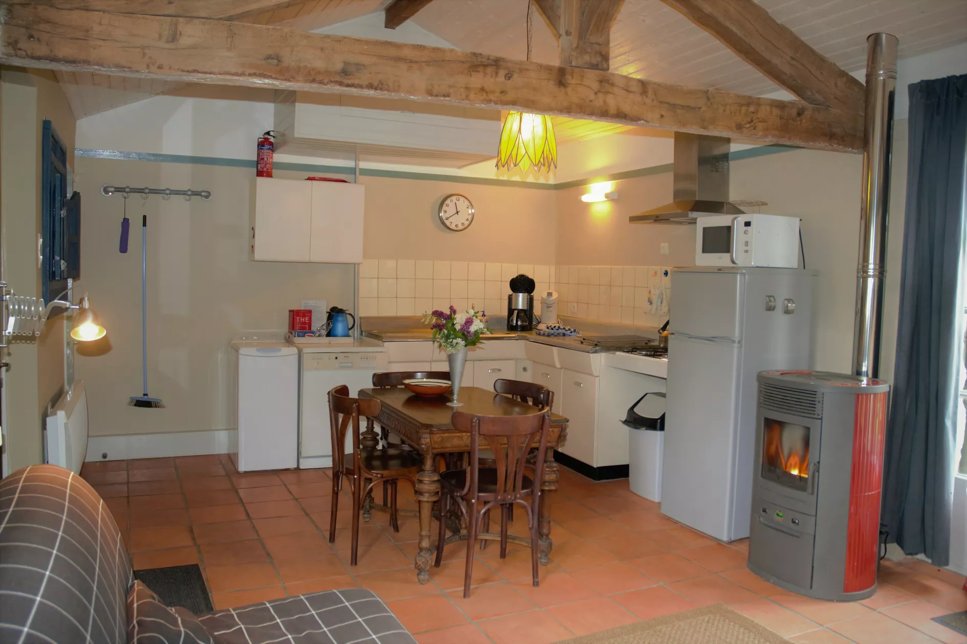 De gîte wordt verwarmd middels enkele elektrische radiatoren en een sfeervolle en makkelijk te bedienen kachel op houtgranulaat.