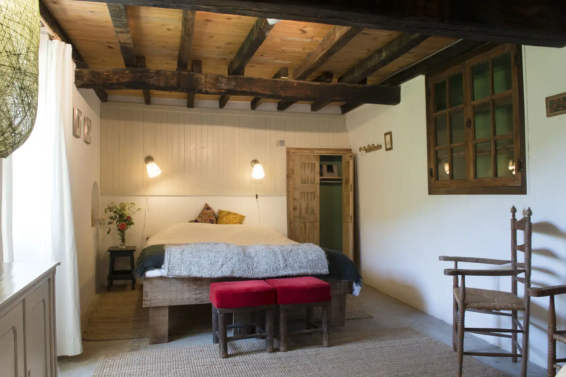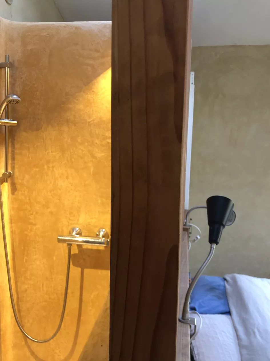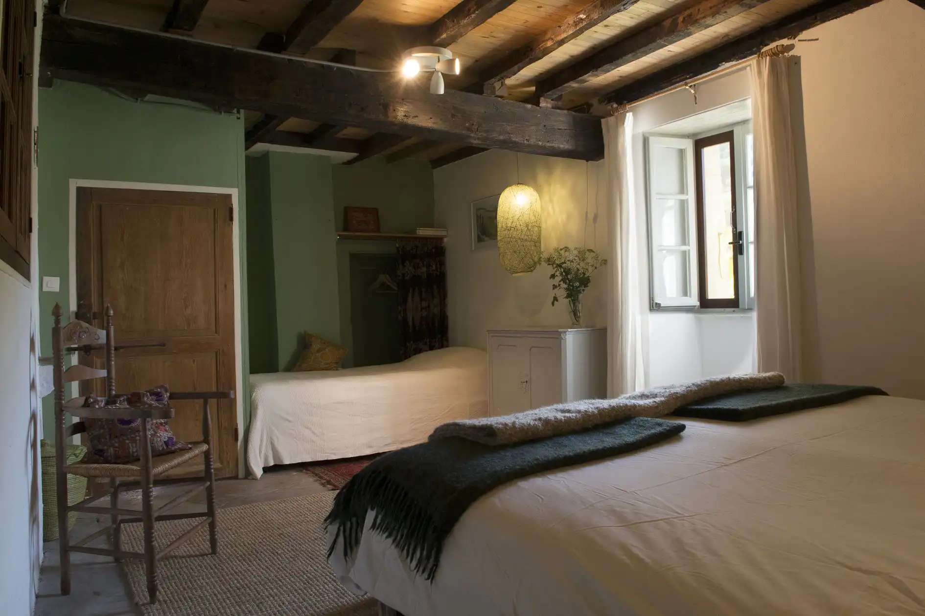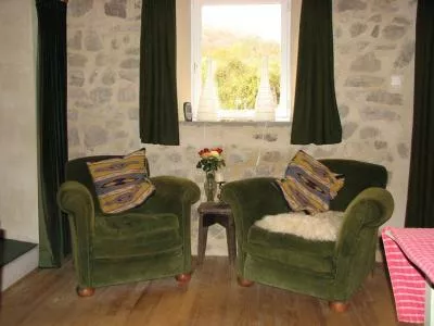Kamer 3: bevindt zich naast de gite, is vanuit het terras te bereiken, heeft twee eenpersoonsbedden (0.80-2.00m) (deze bedden bedden kunnen ook tot een tweepersoonsbed (1.60 -2.00m) gemaakt worden).