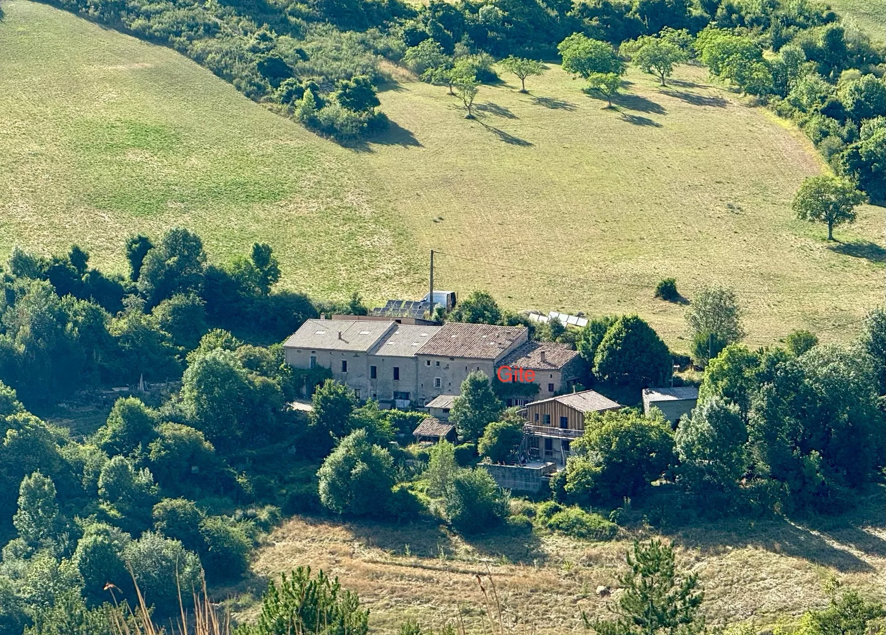 De boerderij met zijn schuren vormen nu een klein gehucht met drie huishoudens, één ervan is de gîte.