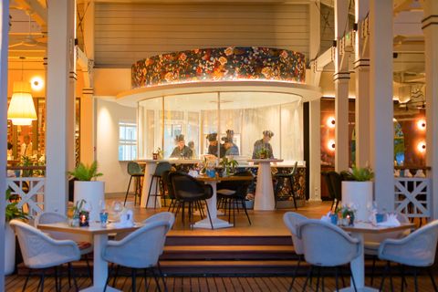 Het hotel is gebouwd in Frans koloniale stijl met veel oog voor detail..