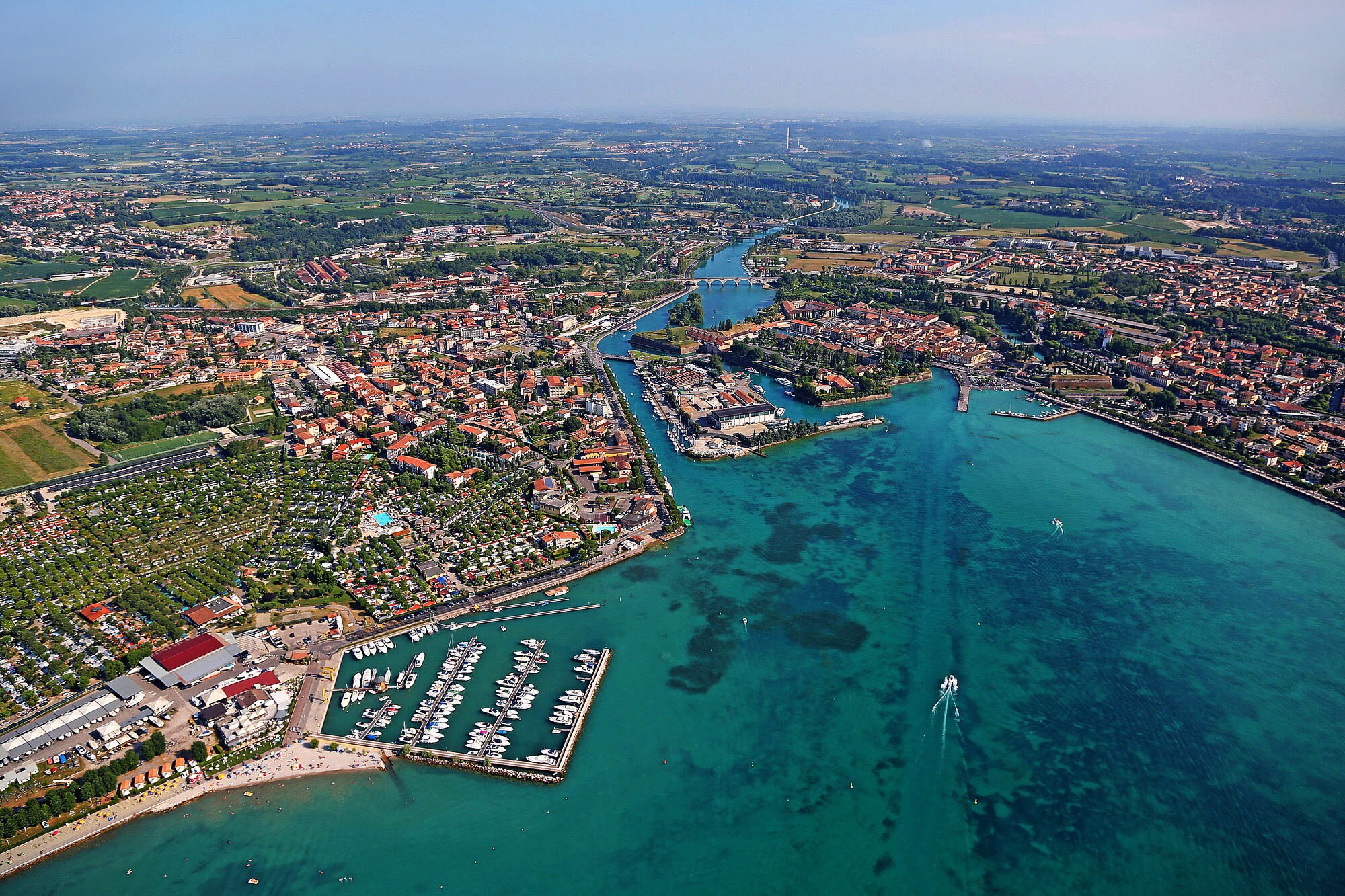 Dit stadje ligt aan de zuidoever van het meer, waar ook het uitgestrekte natuurgebied Parco del Mincio begint, dat helemaal doorloopt tot aan de stad Mantua in het zuiden. Langs de rivier de Mincio loopt een fietspad naar het mooi gelegen stadje Borghetto. En dan zijn er nog de pretparken Gardaland en Canevaworld. Deze liggen op steenworp afstand van de camping.