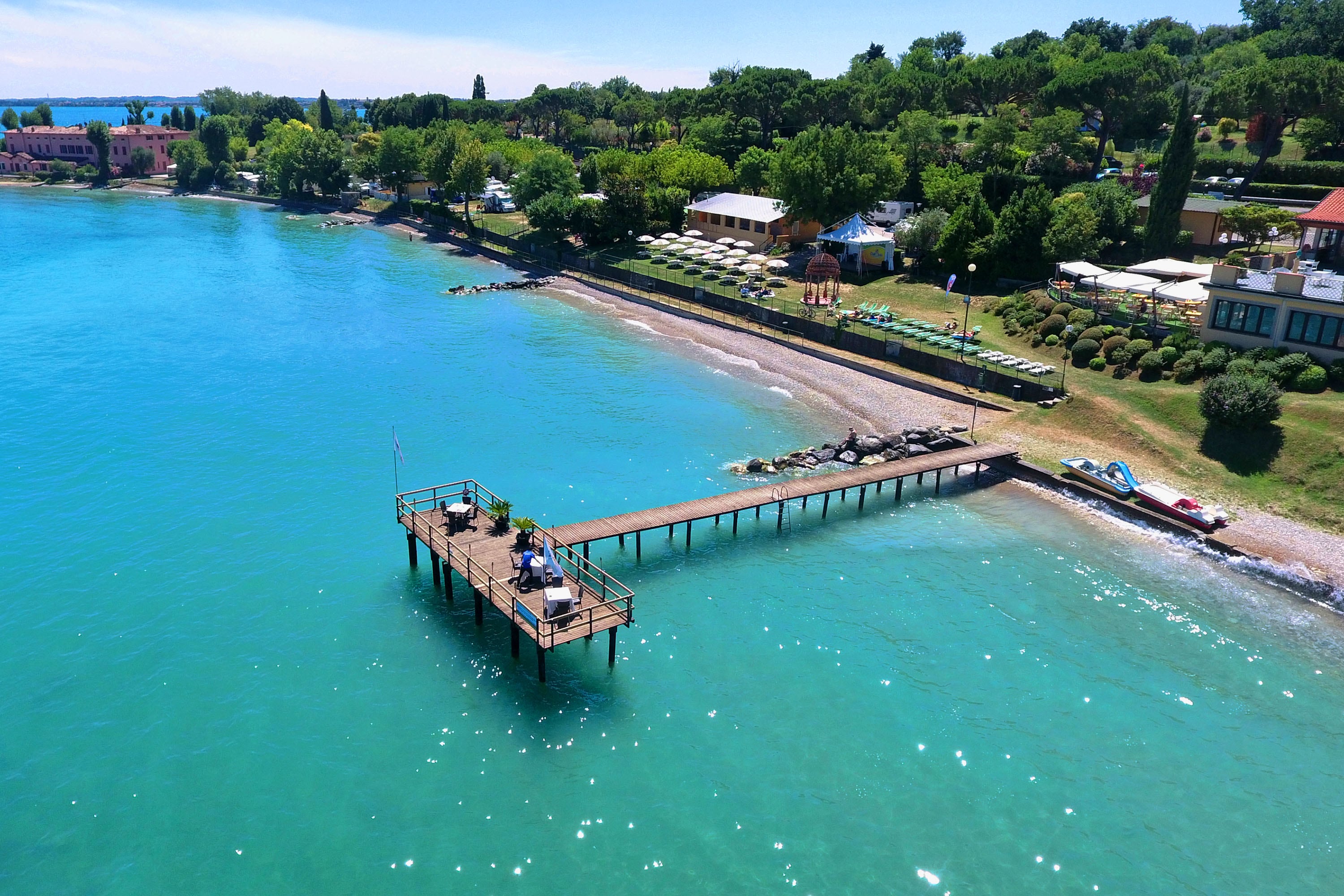 Eén gedeelte ligt pal aan het Gardameer, waar je profiteert van het privéstrand en een apart hondenstrand. Het kiezelstrand gaat over in een langzaam aflopende zandbodem, dus veilig voor kinderen. Hier liggen ook het restaurant/pizzeria en enkele beachservices, zoals een lange steiger.