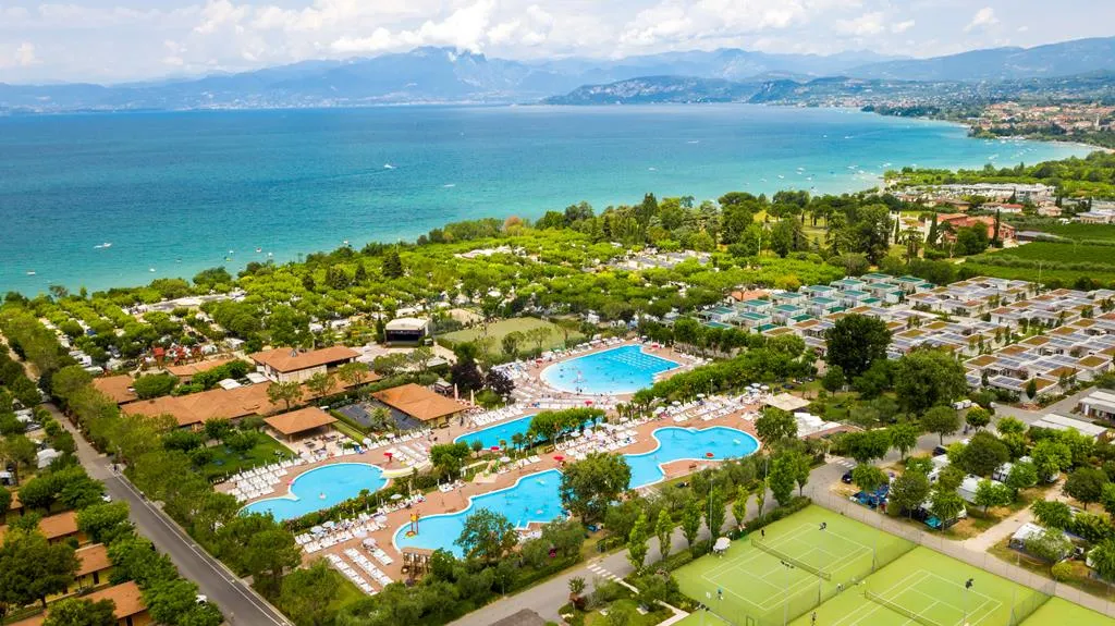 Camping Piani di Clodia in Lazise ligt niet alleen aan het Gardameer, waar je allerlei watersporten kunt beoefenen, maar beschikt ook over een super mooi waterpark met zeven zwembaden en glijbanen voor grote en kleine kinderen.