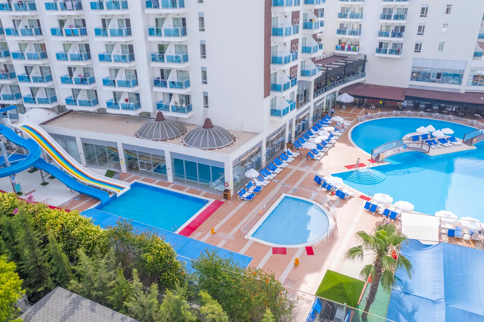 Dit stijlvolle 5-sterrenhotel ligt op een rustige plek, op loopafstand van het strand – te bereiken via een ondergrondse tunnel – en heeft alles in huis voor een topvakantie met het hele gezin. Denk aan twee zwembaden, waterglijbanen, een kinderbadje, speeltuin, animatie en volop sport- en spelmogelijkheden. De All Inclusive formule maakt het extra relaxed: snacks, drankjes en maaltijden zijn de hele dag binnen handbereik. Overdag lekker ontspannen aan het zwembad of meedoen met aquagym, en daarna bijkomen in de hamam of genieten van een massage in het Spa Center.