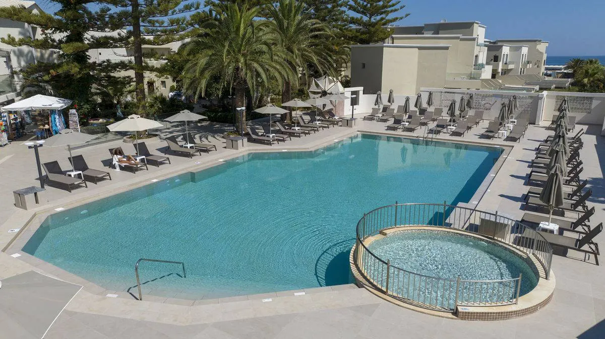 Dit stijlvolle hotel biedt directe toegang tot een prachtig zandstrand. Het hotel is een ideale uitvalsbasis voor natuurliefhebbers, met het nabijgelegen Kournas-meer, de bergen en de zee binnen handbereik.
