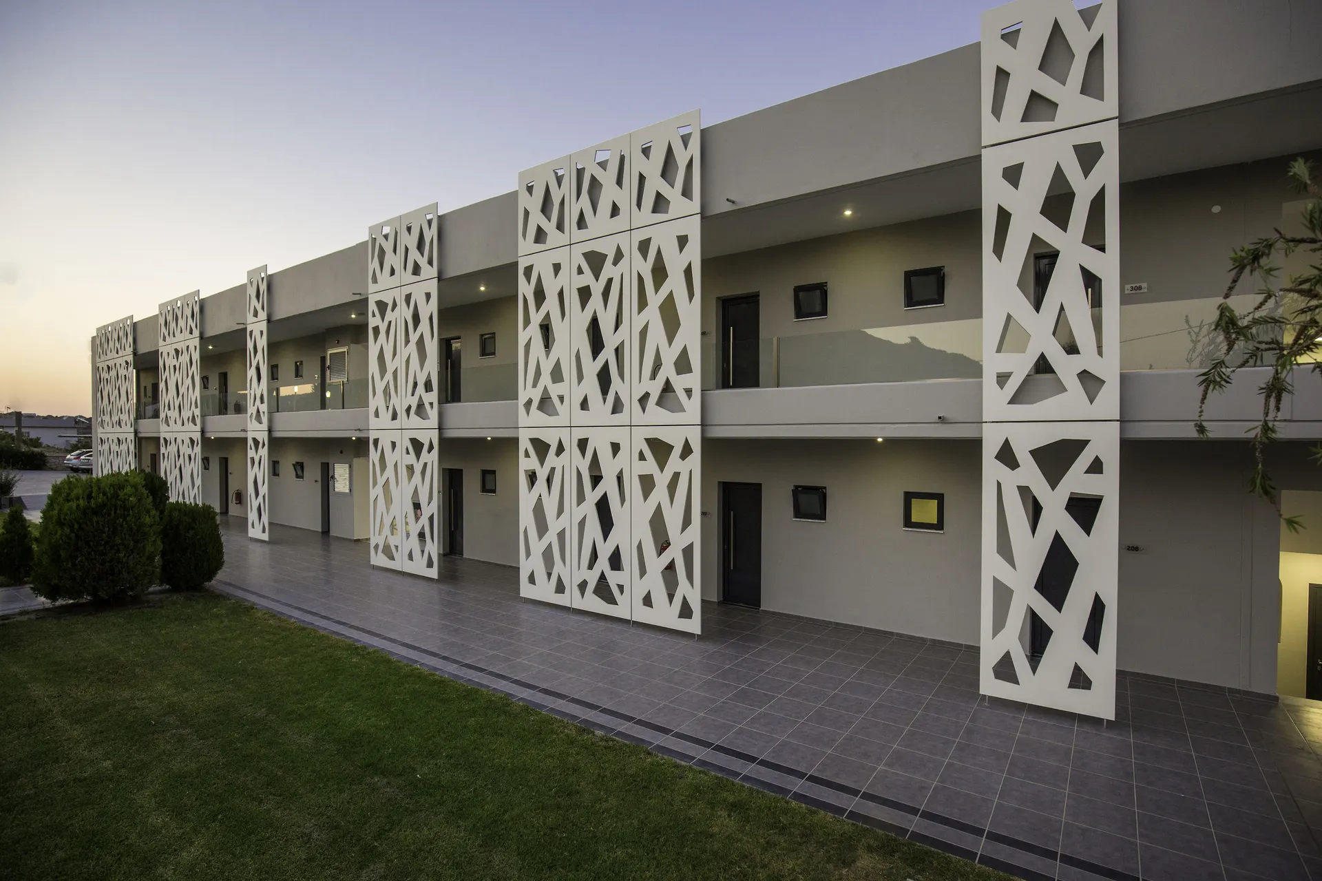 Het appartementenhotel ligt niet ver van het centrum van Faliraki..