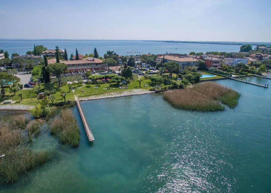 Gasten waarderen de prachtige ligging op het schiereiland van Sirmione, aan beide kanten omgeven door het Gardameer..