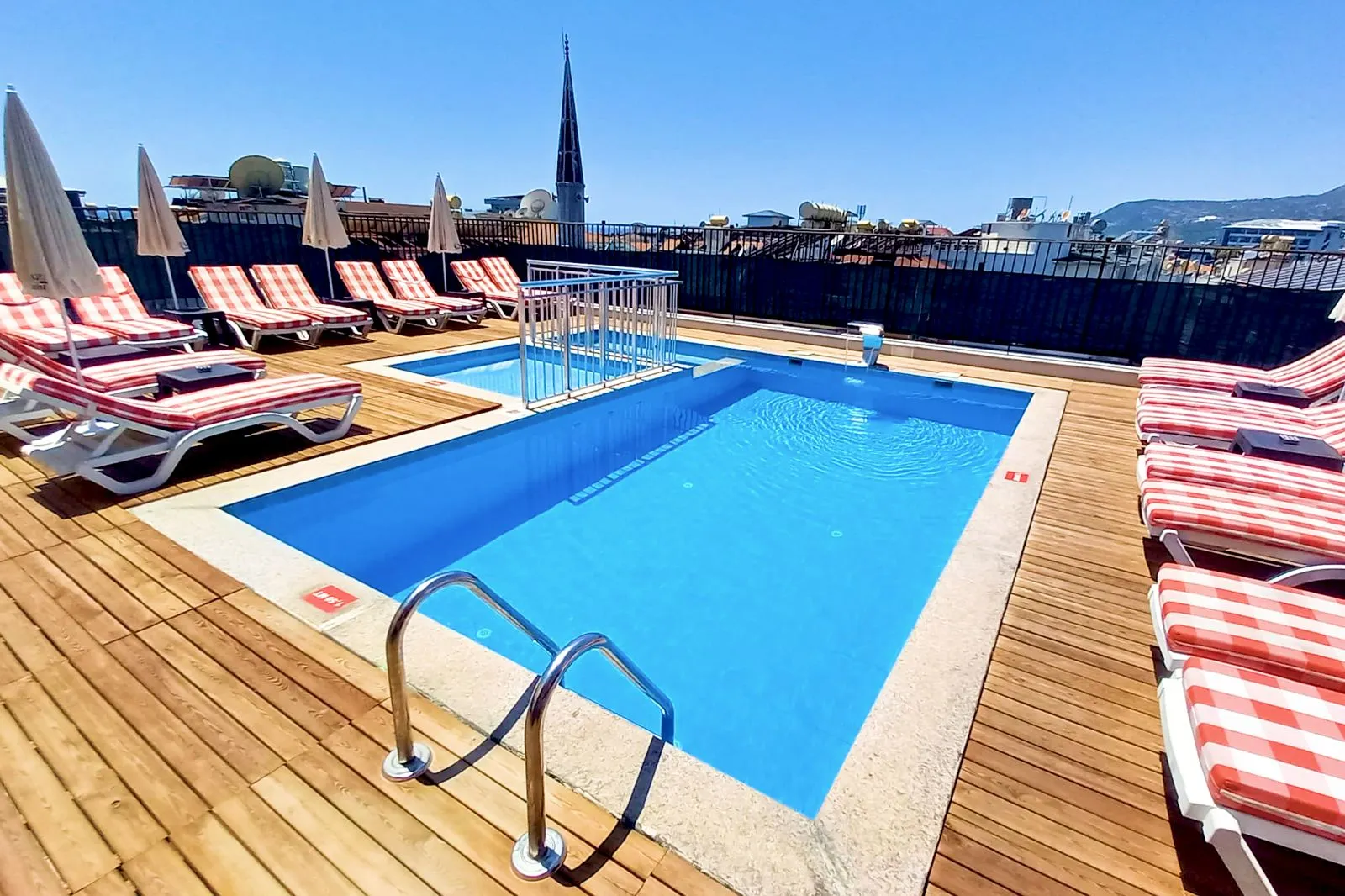 Hier geniet je van een ontspannen sfeer, een warm welkom van het vriendelijke personeel en natuurlijk de Turkse zon. Binnen een paar minuten wandel je naar het strand of struin je door de gezellige straatjes met winkels en restaurants. Op het dak van het hotel vind je een fijn zwembad met een apart kinderbad, perfect om even af te koelen na een dag in de zon. Ook is er een restaurant waar je terechtkunt voor een smakelijke maaltijd.