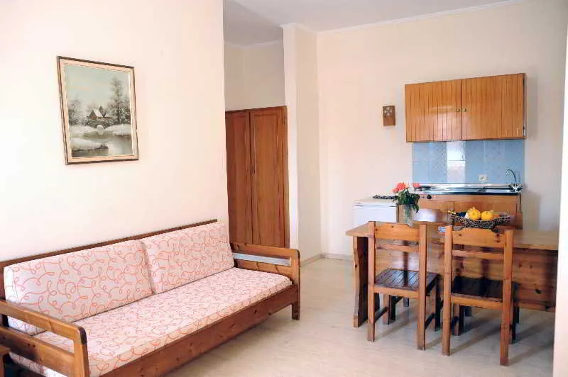 Dit aparthotel ligt direct aan het strand, centraal in Kato Stalos..