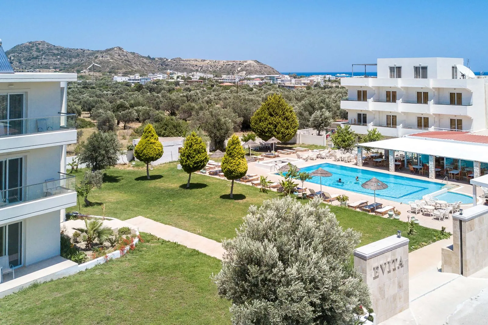 Een gezellige, kleinschalige accommodatie op het prachteiland Rhodos is Evita Hotel.