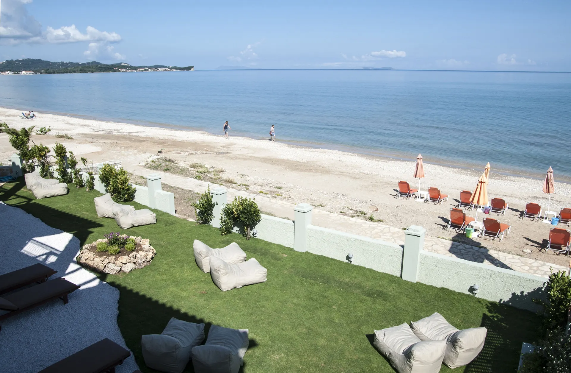 Dit boetiekhotel ligt direct aan het strand, centraal in Acharavi..