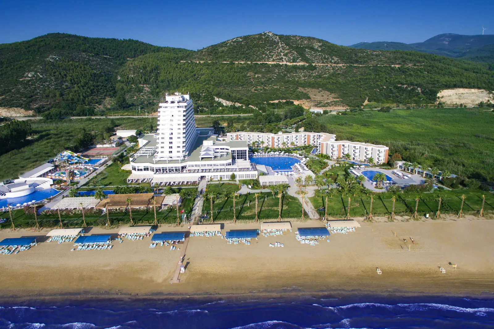 Dit vijfsterrenhotel ligt direct aan het strand en biedt een schitterend uitzicht over de Egeïsche Zee. Of je nu met het hele gezin, met vrienden of met z’n tweeën reist, hier vind je alles voor een ontspannen en plezierige vakantie. In de grote tuin wacht een waterpark met glijbanen voor jong en oud, terwijl de rustzoekers neerstrijken op het privéstrand met comfortabele ligbedden. Deruime, moderne kamers zorgen voor een fijne nachtrust na een dag vol zon en zwemplezier.