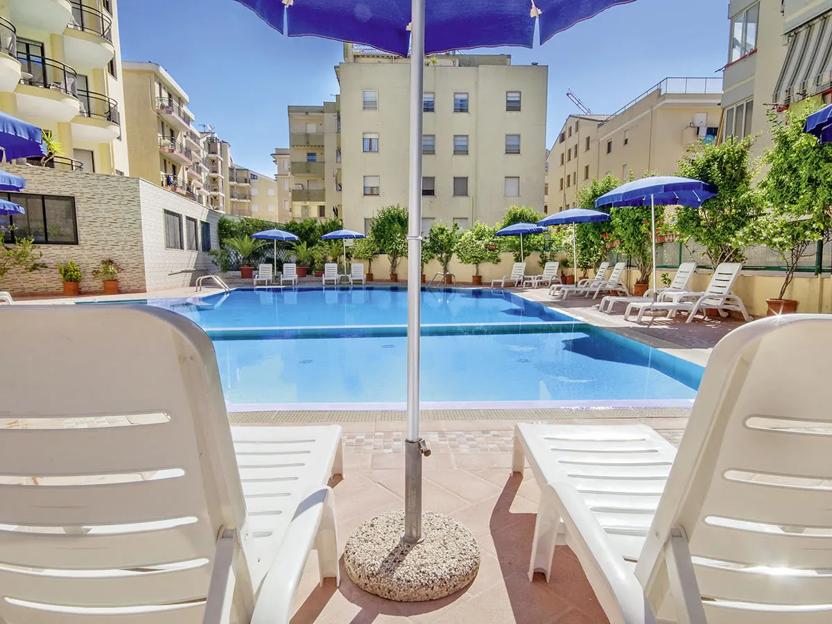Je volgende strandvakantie kan komen! Ontspan overdag bij het zwembad van het populaire Hotel Rina of ga naar het strand.'s Avonds kun je in het restaurant genieten van een menu naar keuze.
