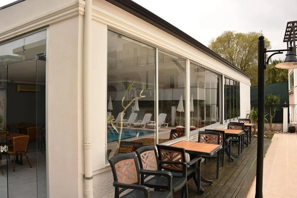 Op ca. 5 minuten van het zand- en kiezelstrand, ligt het appartementenhotel in Kemer, het centrum van Kemer bereikt men na ongeveer 700 m.