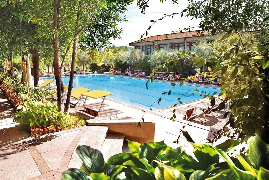 Maar vooral genieten. Van de mooie parkachtige omgeving waarin het hotel ligt. Palmbomen, cipressen, oleanders; hier overheerst de kleur groen. Van het uitzicht.