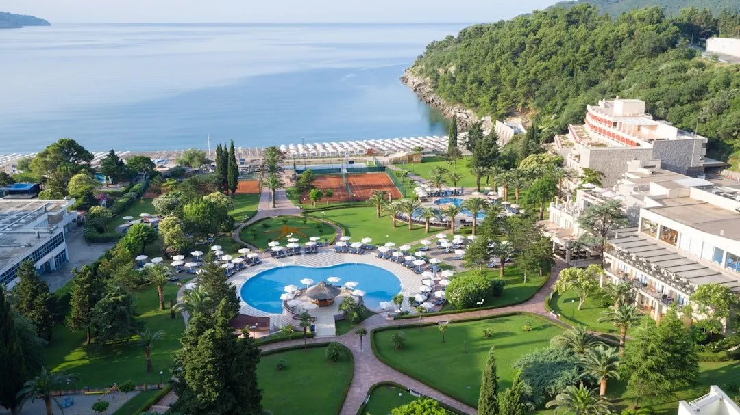 Dit 4-sterrenhotel ligt pal aan het strand van Bečići en wordt omringd door prachtige tuinen.