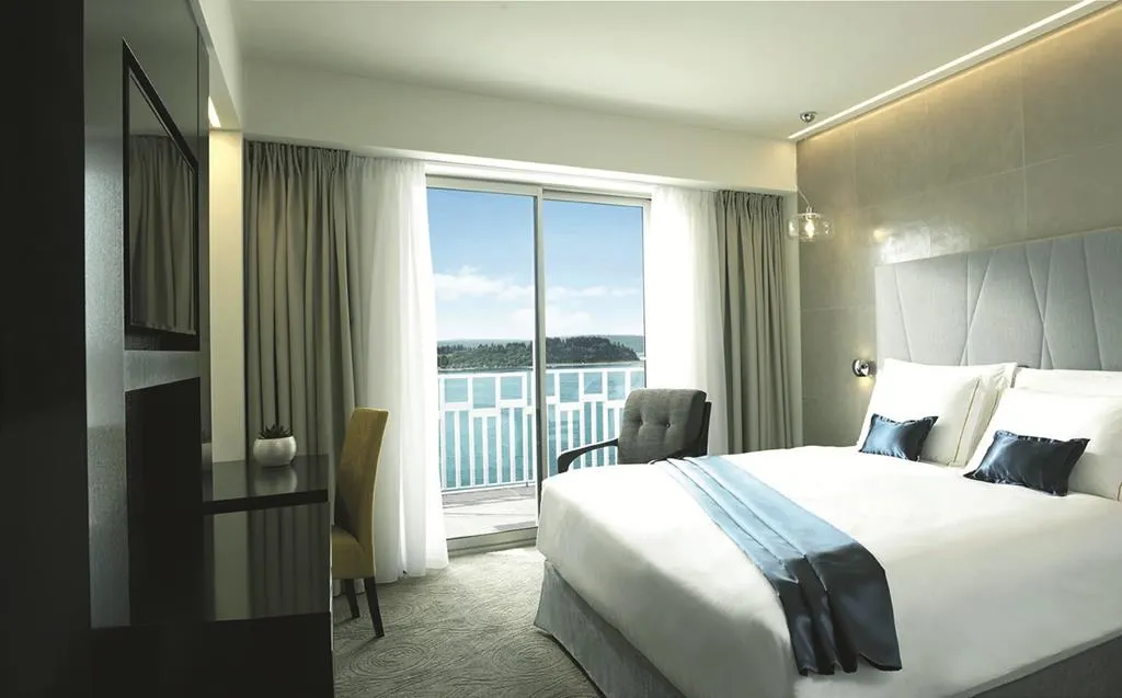 Ontspan in de thermale zwembaden en sauna’s, of geniet van een dagje aan het strand met adembenemende uitzichten over de kust. De stijlvolle kamers, vooral die met zeezicht, zorgen voor een heerlijke ervaring.