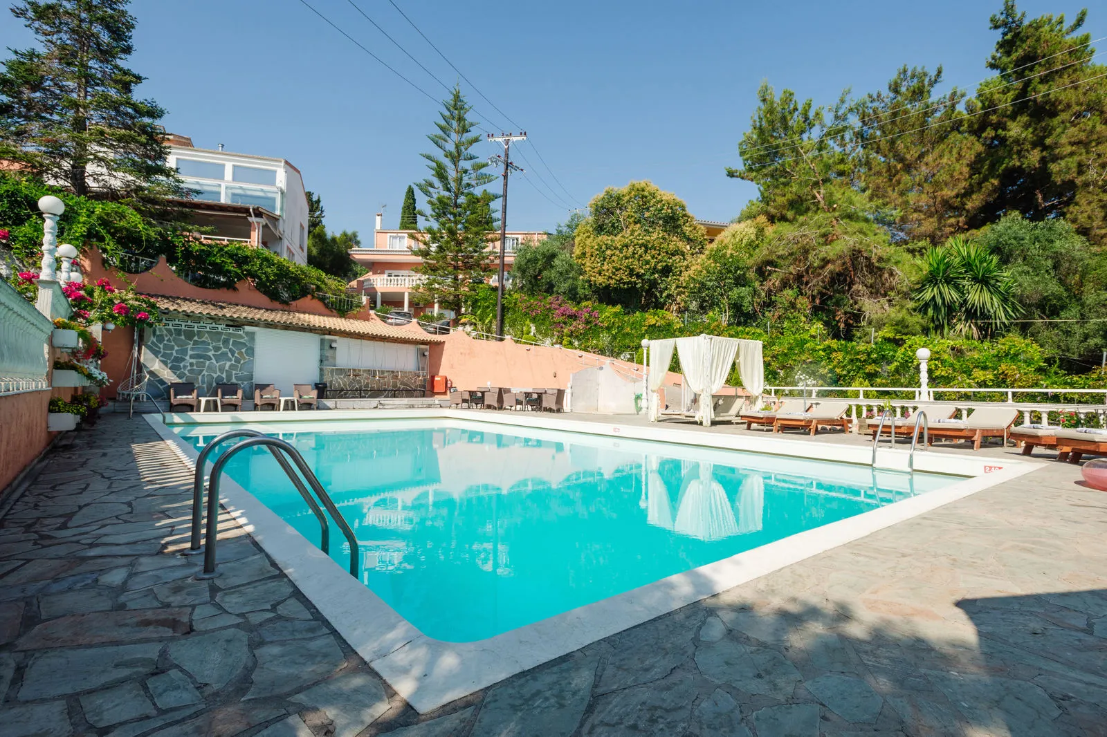 Deze door een familie gerunde accommodatie ademt warmte en eenvoud. Je wordt omringd door weelderige tuinen en geniet vanaf het ontbijtterras van een prachtig uitzicht over de Ionische Zee. Of je nu komt om te ontspannen aan het zwembad, door het gezellige centrum van Dassia te wandelen of een dag op het strand door te brengen, alles ligt hier binnen handbereik. Het hotel biedt een fijne mix van comfort en een ontspannen sfeer.