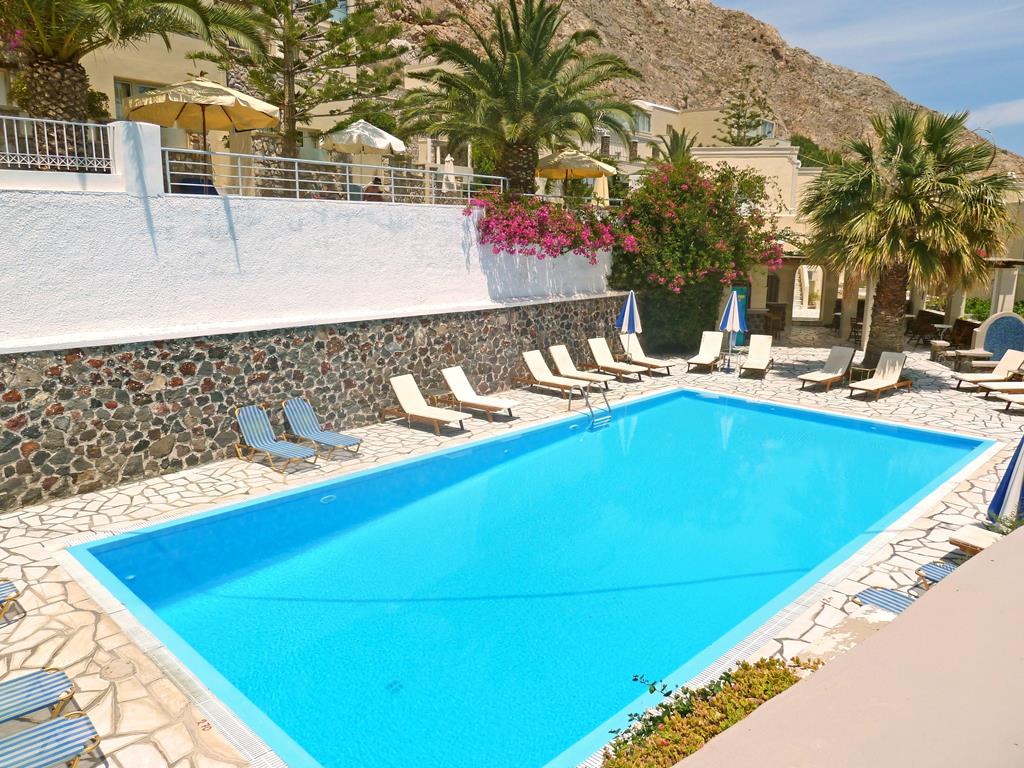 Dit hotel ligt iets verder van het centrum, vlak bij de berg waar de oude route naar de hoofdstad Fira heen leidt.