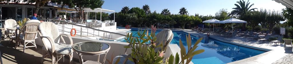 De typisch Griekse vakantiesfeer verwelkomt je lichte gebouwen, groene tuinen en een fijn zwembad waar je zo de hele dag blijft hangen. Met een poolbar, restaurant en comfortabele loungeplekken heb je alles bij de hand.