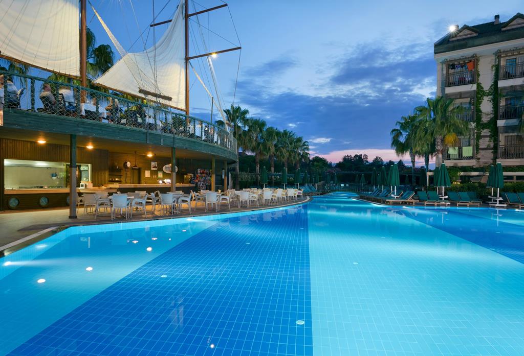 | Extra | Tropisch resort met palmbomen, Het strand op 600 meter, Restaurant vormgegeven als schip, Avondshows en livemuziek, Een dagje uit naar Side? Check!, Buffet en à-la-carte in één & inclusief transfers. |