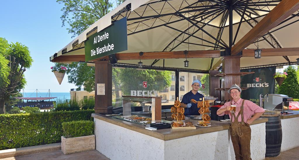 Hier geniet je all day long van de lekkerste hapjes en drankjes terwijl je bruin ligt te worden op je ligbedje aan het enorme zwembad. Zin om een stukje te lopen? Wandel door de branding van het 100 meter verderop gelegen strand van Golden Sands en geniet van het prachtige uitzicht.