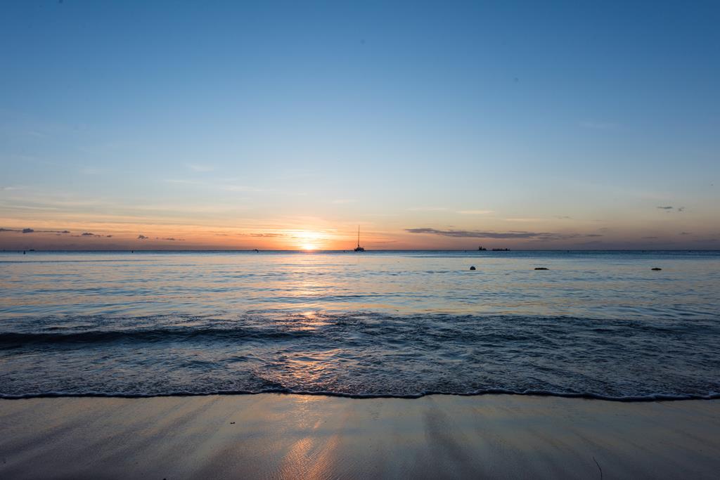 Word wakker met het geluid van golven die zachtjes tegen het strand slaan.