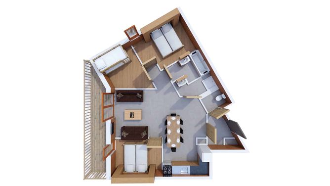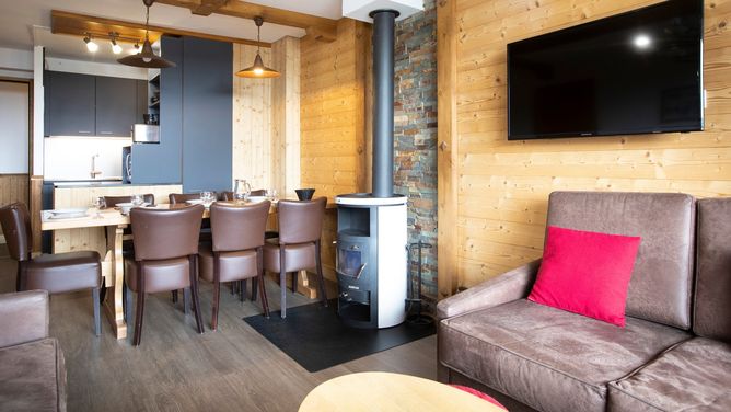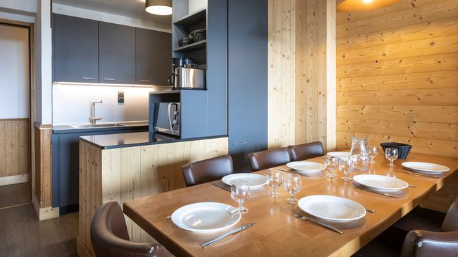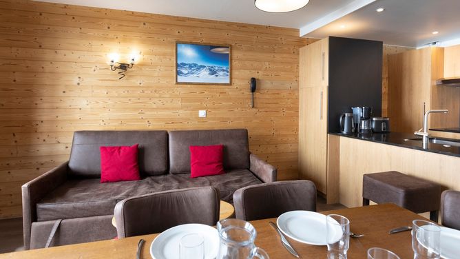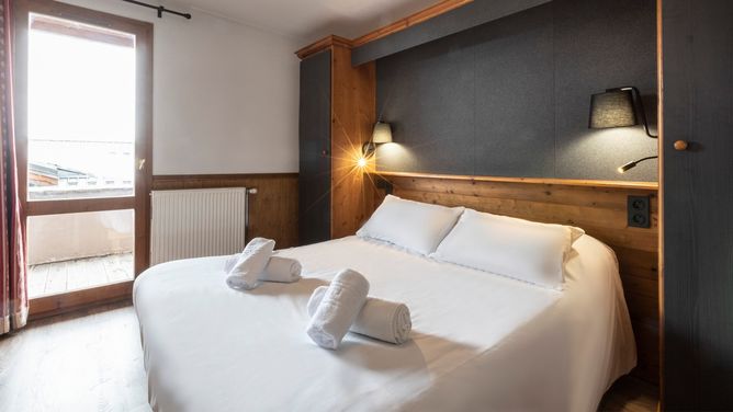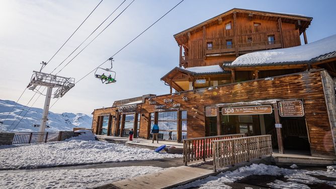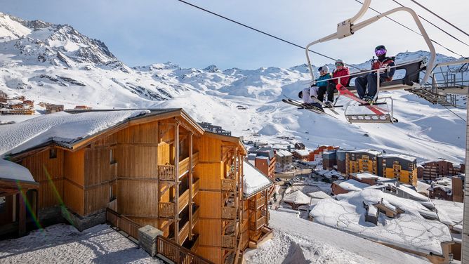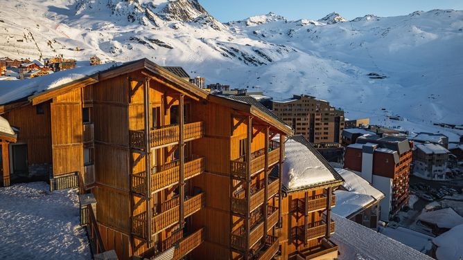 De in Savoyaardse stijl gebouwde residentie Les Balcons de Val Thorens ligt direct aan de piste.