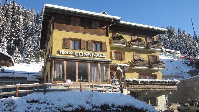 Het gezellige 2-sterren Hotel Confinale ligt aan de ingang van Santa Caterina, direct tegenover de kabelbaan (8-persoons gondel Plaghera) en daardoor op slechts ca.