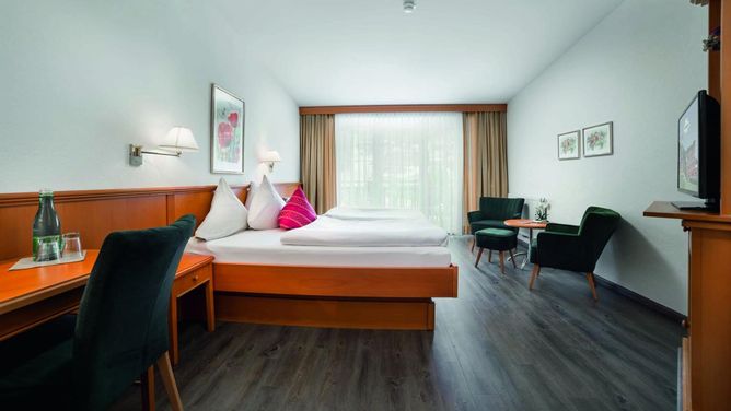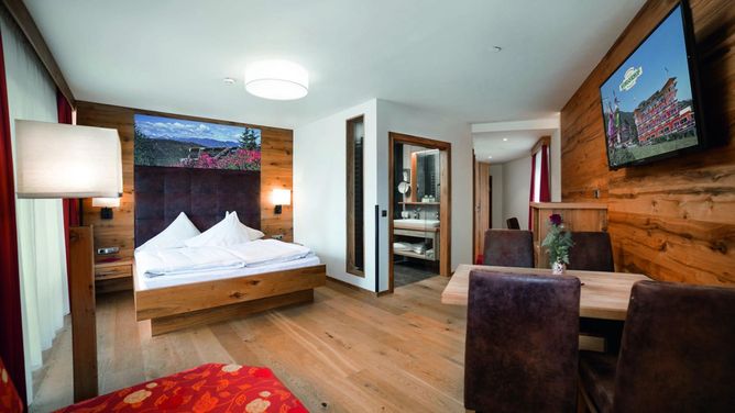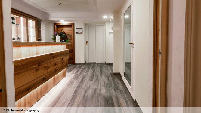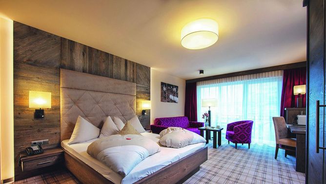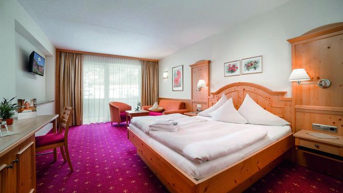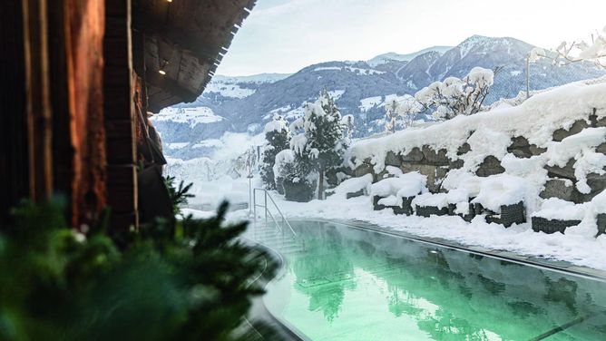 Het verzorgde wellnesshotel bestaat uit een hoofd- en bijgebouw, rond 150 m uit elkaar en door een onderaardse gang met elkaar verbonden. Het hotel biedt een uniek uitzicht over het dal en de bergwereld.