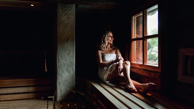 120 m²) en een ruim saunagedeelte o.a. met whirlpool, sauna, Finse sauna, biosauna, houtsauna, zout stoombad, edelsteen-stoombad, energiesauna, ozon-sauna, infraroodsauna en rustruimte. De hele dag is er gratis sap, fruit en thee in het wellnessgedeelte.