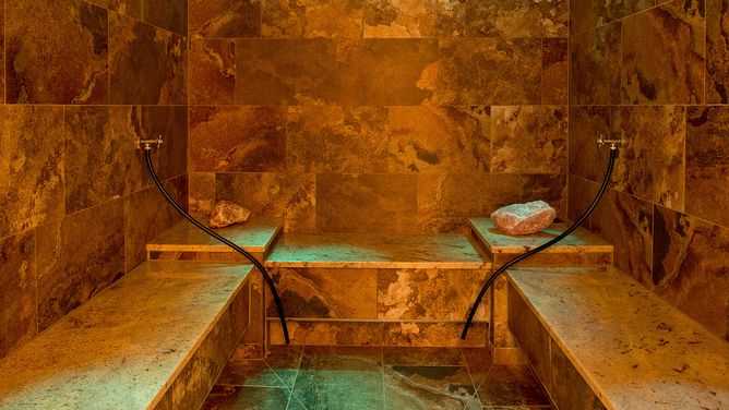 Het verzorgde wellnessgedeelte is ca. 500 m² groot en bestaat uit een binnenbad met panoramisch uitzicht, 300 m² groot saunagedeelte, stoombad, ontspanningsruimte en infraroodsauna die je gratis ter beschikking staan..
