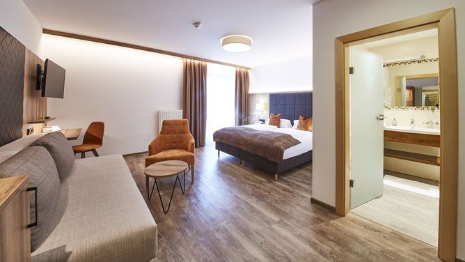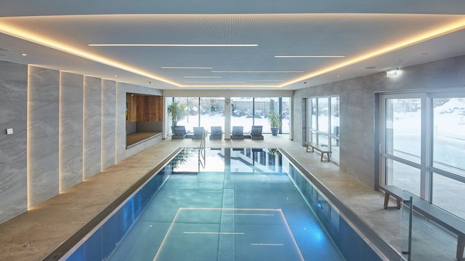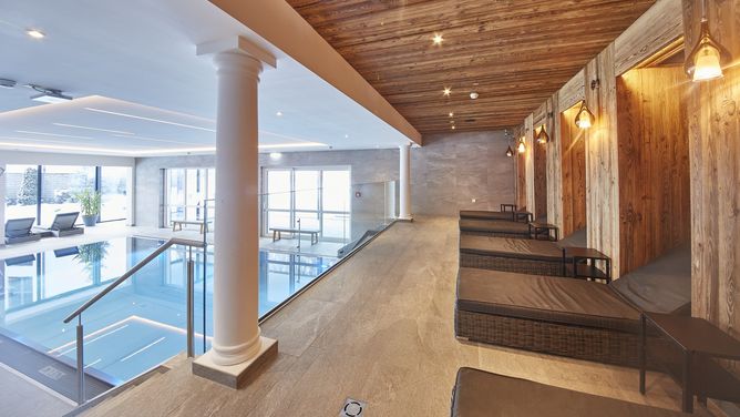 In het hoofdgebouw is er een wellnessruimte (ca. 400 m²) met binnenzwembad, tegenstroomsysteem en waterval, een verwarmd buitenzwembad met binneningang en twee bubbelbaden, een klein kinderbad, sauna, outdoor-panorama sauna, pekelstoombad, infraroodcabine, caldarium, ontspanningsruimte en fitnesscentrum. De zonnebank, de hydrojet bovenwatermassages en massages kunnen tegen betaling worden geboekt.