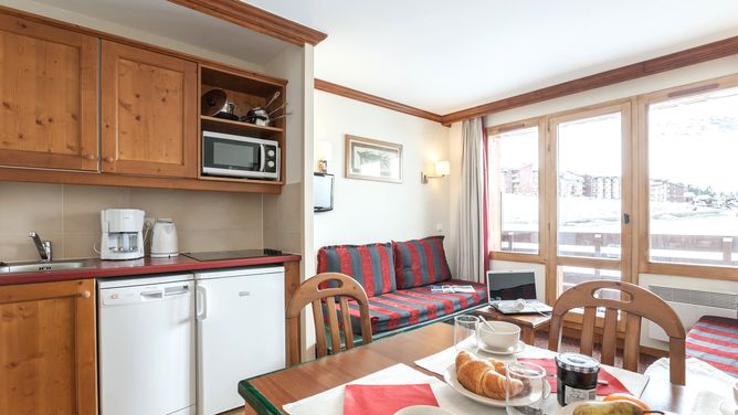 De traditionele Résidence Le Mont Soleil bevindt zich in de wijk Plagne Soleil, rustig en toch centraal gelegen, direct aan de voet van de pistes en maar 100 m bij de berglift vandaan.
