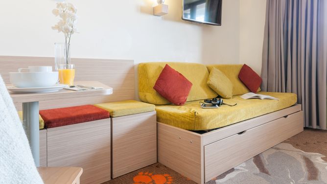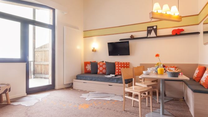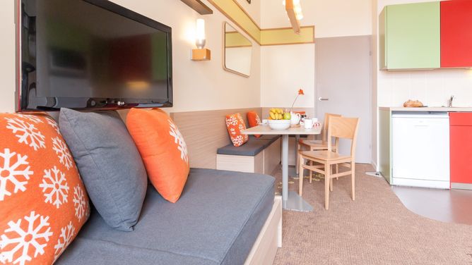 Bij voldoende sneeuw is de afdaling tot aan de accommodatie mogelijk. Via roltrappen bereik je het winkelcentrum met winkels, restaurants en bars.