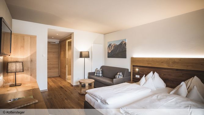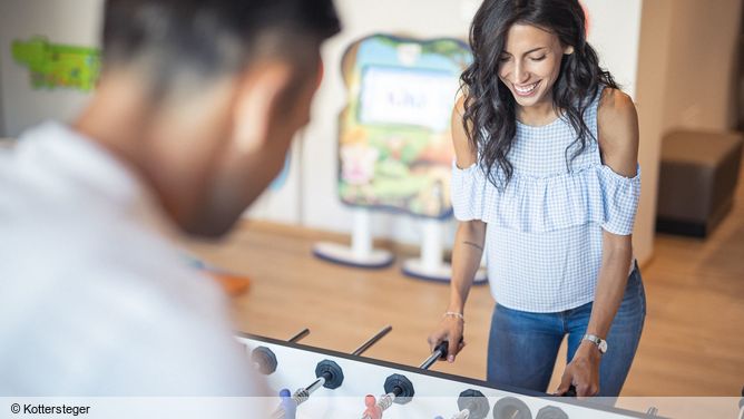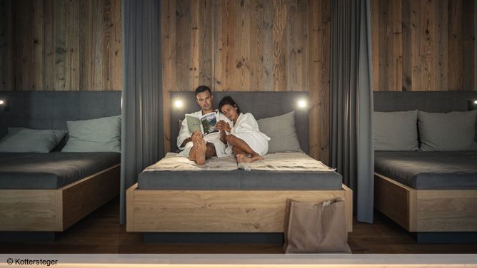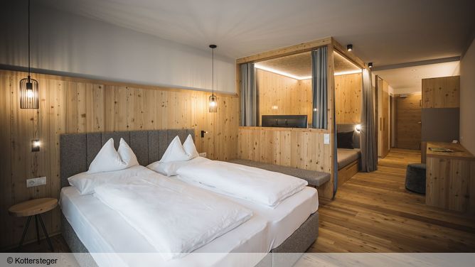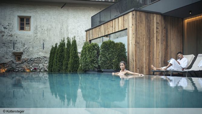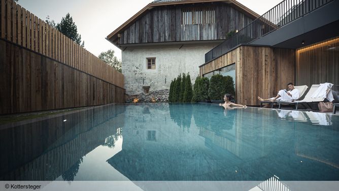 Een zonneterras en de ruime wellnessruimte (ca. 500 m²) met binnenzwembad inclusief whirlpool, buitenzwembad, Tiroolse sauna, biosauna, stoombad, kruidenstoombad, infrarood ligruimte, tepidarium en Kneipp-waterbassin nodigen je uit om te ontspannen. Er is ook een klein gedeelte voor alleen volwassenen met een schuursauna en ontspanningsruimte.