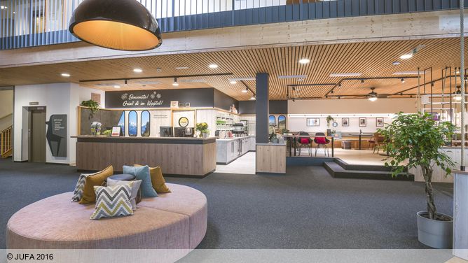 Het comfortabele hotel beschikt over een receptie met open haard, lift, Wi-Fi, ontbijtruimte, café/bar, pizzeria, restaurant, en een skiruimte met skischoenendroger. Bovendien is er een kinderspeelkamer, een ca. 400 m² grote overdekte avontuurlijke speelwereld, een bouldergedeelte en een sporthal (2 uren in de ochtend incl., verder tegen betaling). Gratis parkeerplaatsen zijn ook beschikbaar (op basis van beschikbaarheid).