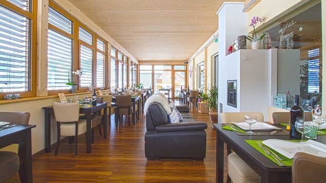 Bij de algemene uitrusting horen een ca. 20 m verderop gelegen bijgebouw, receptie, Wi-Fi, verblijfsruimte, ontbijtruimte, eetzaal, restaurant, bar, sauna, skiruimte en parkeerplaatsen (op basis van beschikbaarheid).