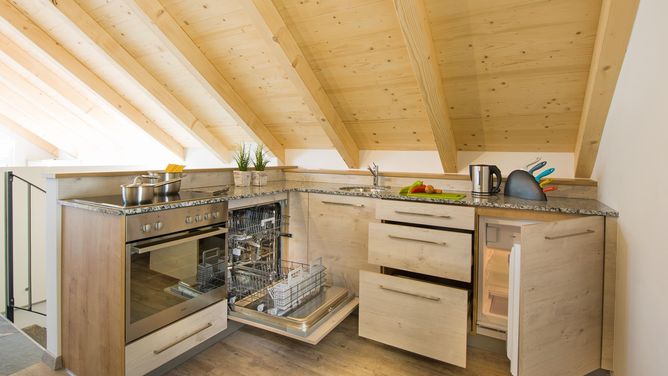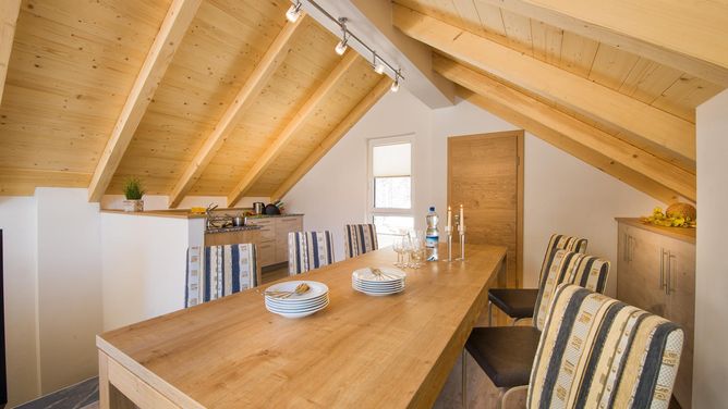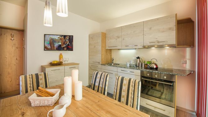 Bij de uitrusting van het hoogwaardig vormgegeven appartementencomplex horen een receptie, Wi-Fi, restaurant en een afsluitbare skikelder met skischoenendroger en een oplaadstation voor elektrische auto's.