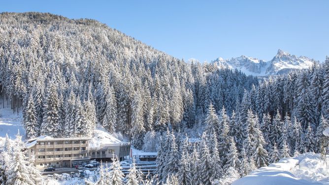 900 m hoogte in de Val d'Ega, op ca. 3,5 km van het centrum van Eggen. Een skibushalte ligt direct naast het hotel, zodat je het 6 km verderop gelegen skigebied Val di Fiemme-Obereggen eenvoudig bereikt. De toegang tot de langlaufloipe ligt ca.