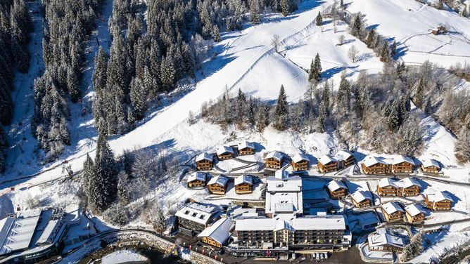 400 m van het centrum van Wagrain. De accommodatie ligt direct bij de dalafdaling, zodat bij goede sneeuw de afdaling tot aan het hotel mogelijk is.