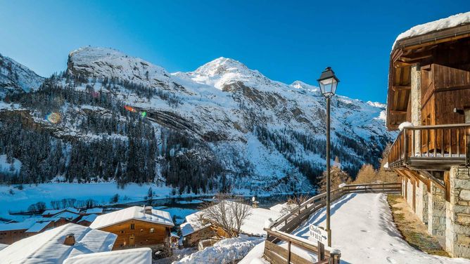 De toegang tot het skigebied Tignes - Val d'Isere, via de skiliften Sache en Brévières, bereik je na ongeveer 1,3 km. De eerste winkels en restaurants liggen op ongeveer 1 km afstand en het centrum van Tignes ligt op ongeveer 9 km afstand..