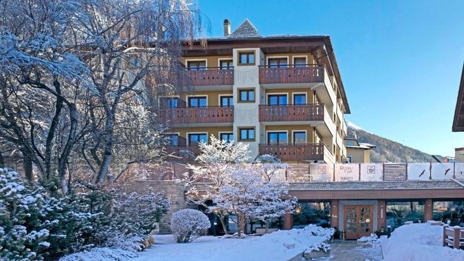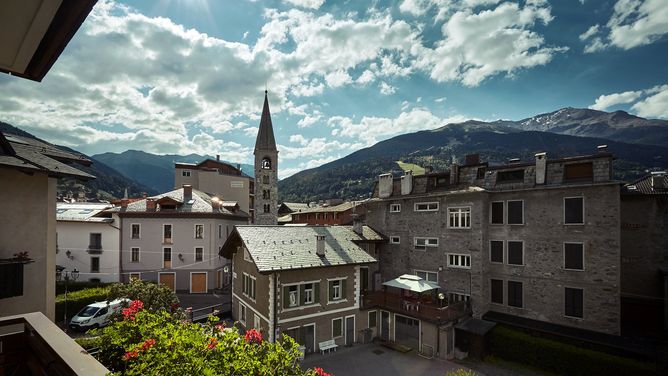 Het extravagante 4-sterren Hotel Rezia ligt in het centrum van Bormio, op slechts ongeveer 100 meter van de dichtstbijzijnde skibushalte, vanwaar je de ingang van het skigebied van Bormio, op ongeveer 750 meter afstand, kunt bereiken..