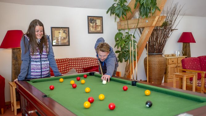 Het skimateriaal kun je in een ski/snowboardberging opbergen. Ter plaatse is er een parkeerplaats - op basis van beschikbaarheid.KinderenHet chalet beschikt over een kinderspeelruimte. Kinderstoelen en kinderbedden staan tegen betaling ter beschikking (op aanvraag/op basis van beschikbaarheid).EntertainmentVoor uw vrijetijdsbesteding is er in het verblijf biljart (tegen betaling).VerzorgingZonder verzorging..
