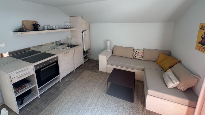 De dichtstbijzijnde afdaling voor alpine skiërs ligt op slechts ongeveer 250 m afstand. De dichtstbijzijnde winkels bevinden zich op ca. 1,1 km afstand, de dichtstbijzijnde cafés en restaurants reeds na ca. 100 m.InrichtingTot de faciliteiten van het mooi ingerichte verblijf behoort Wi-Fi.
