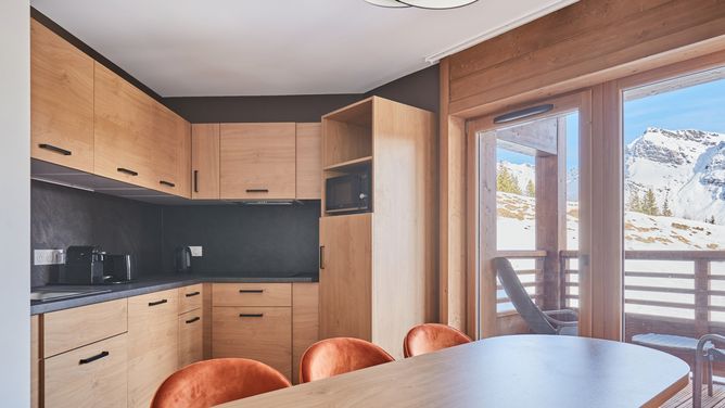 1,1 km van het centrum van La Rosière op een hoogte van ca. 1.850 m. De toegang tot het skigebied is via de op ongeveer 800 m verder gelegen lift "Les Eucherts" mogelijk. De dichtstbijzijnde afdaling voor alpine skiërs en snowboarders ligt direct voor de huisdeur.