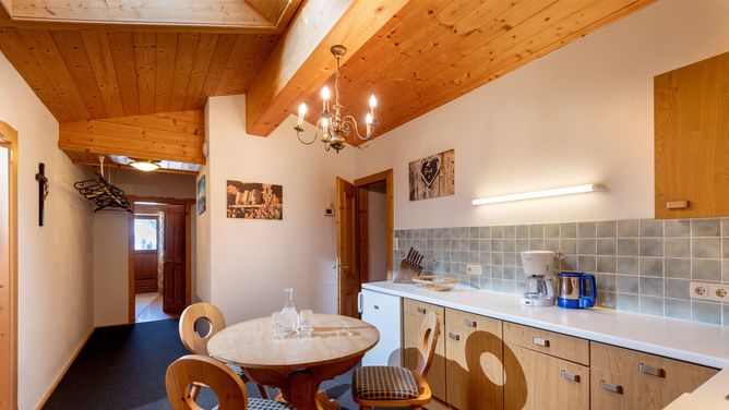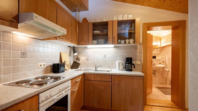 7,8 km van het centrum van Söll op een hoogte van ca. 1.400 m. De dichtstbijzijnde afdaling voor alpine skiërs en snowboarders ligt direct voor de huisdeur. De dichtstbijzijnde winkels bevinden zich op ca.
