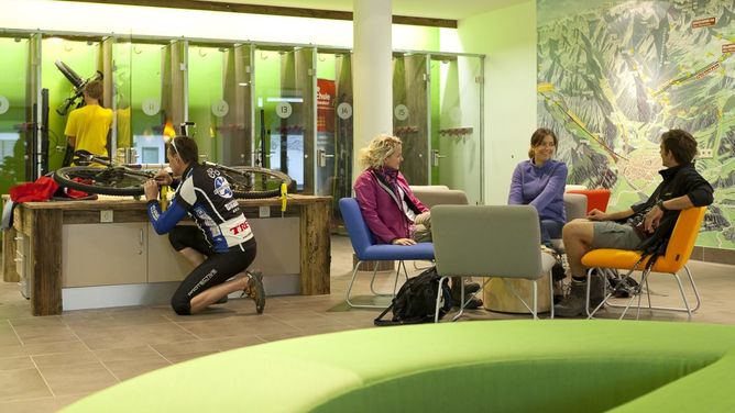 De dichtstbijzijnde winkels bevinden zich op ca. 2,4 km afstand, de dichtstbijzijnde cafés en restaurants reeds na ca. 300 m.InrichtingTot de faciliteiten van het gezellige hotel behoren een receptie, Wi-Fi, recreatieruimte, lift, ontbijtruimte en hotelbar. De wintersportuitrusting kun je in een skikelder opbergen.