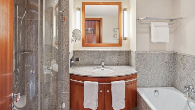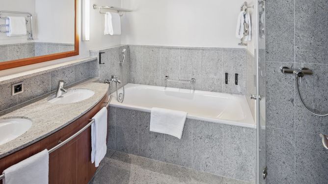 300 m afstand, de dichtstbijzijnde cafés en restaurants na ca. 450 m.InrichtingTot de faciliteiten van het luxueuze hotel behoren Wi-Fi, bibliotheek, recreatieruimte, lift, ontbijtruimte, hotelrestaurant en hotelbar. De wintersportuitrusting kun je in een skikelder opbergen. Ter plaatse zijn er een openbare parkeerplaats (tegen betaling) en een oplaadpunt voor elektrische auto´s (tegen betaling) - op basis van beschikbaarheid.KinderenDe kinderspeelruimte beschikt over een ballenbad.