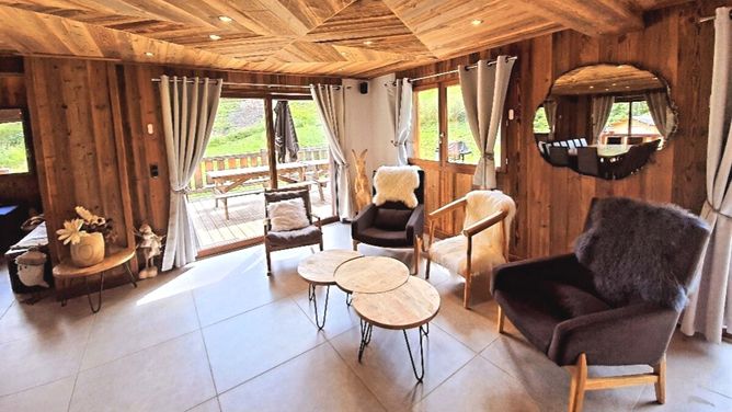 LiggingHet gezellige chalet Les Chalets Thoya ligt direct in het centrum van Le Corbier op een hoogte van ca.